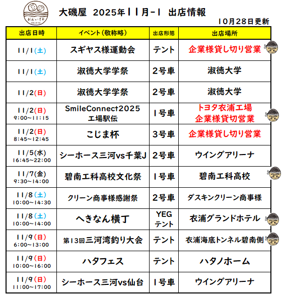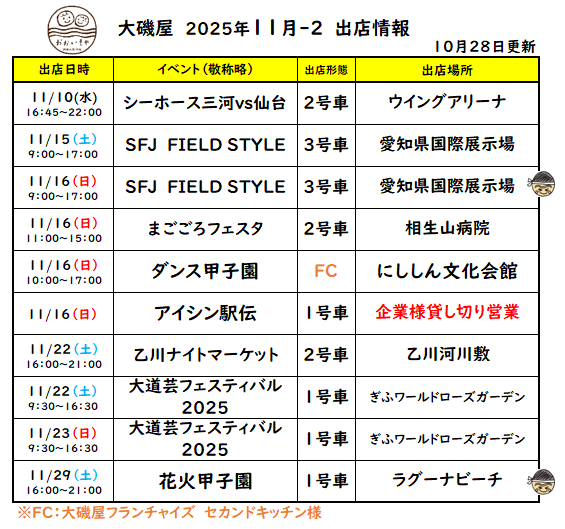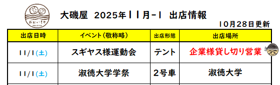 さて、11月もおかげさまで沢山の出店の御縁をいただいております。